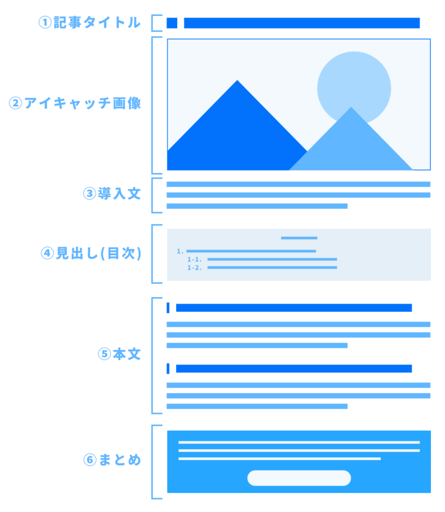 ここでは、ブログの1記事を構成するために欠かせない「6つの基本要素」について、初心者にもわかりやすく順を追って解説していきます。