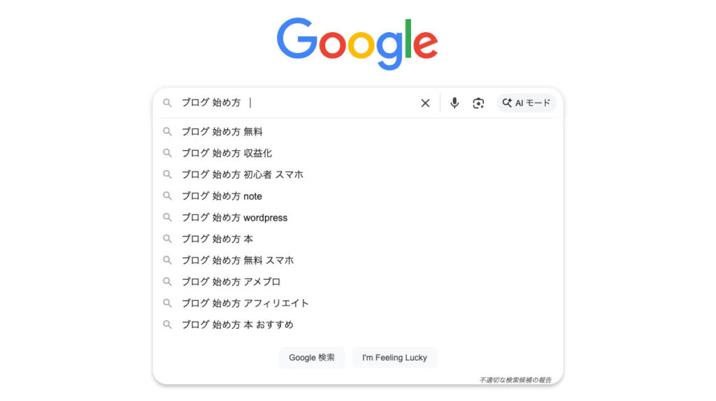 例:「ブログ 始め方 無料 趣味」「副業 在宅 学生 OK」など。