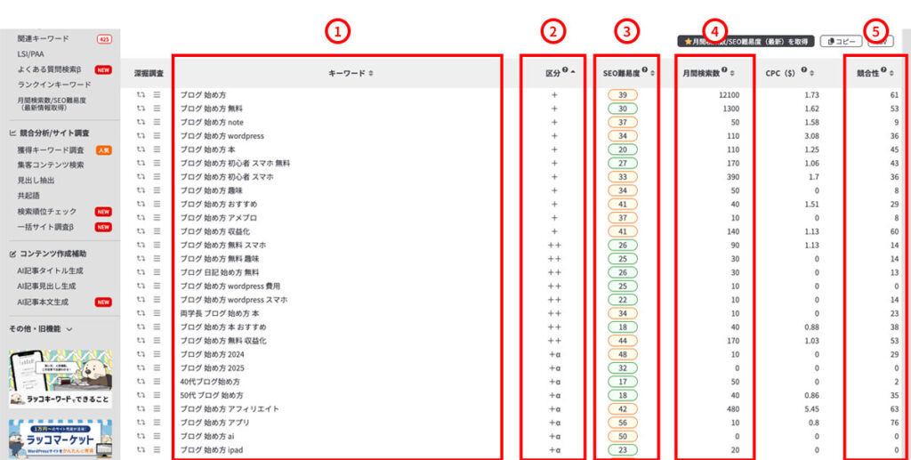 それぞれに特徴があり、ブログ初心者が狙うべきキーワードも異なります。