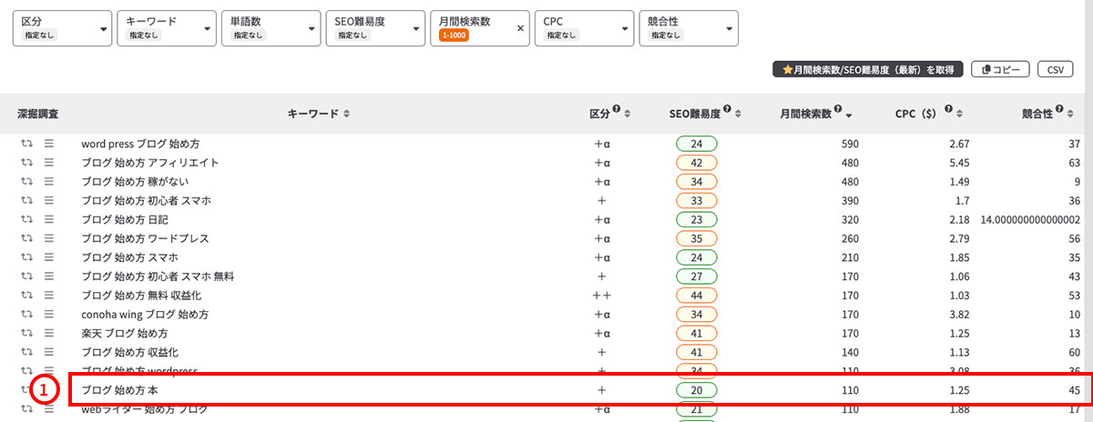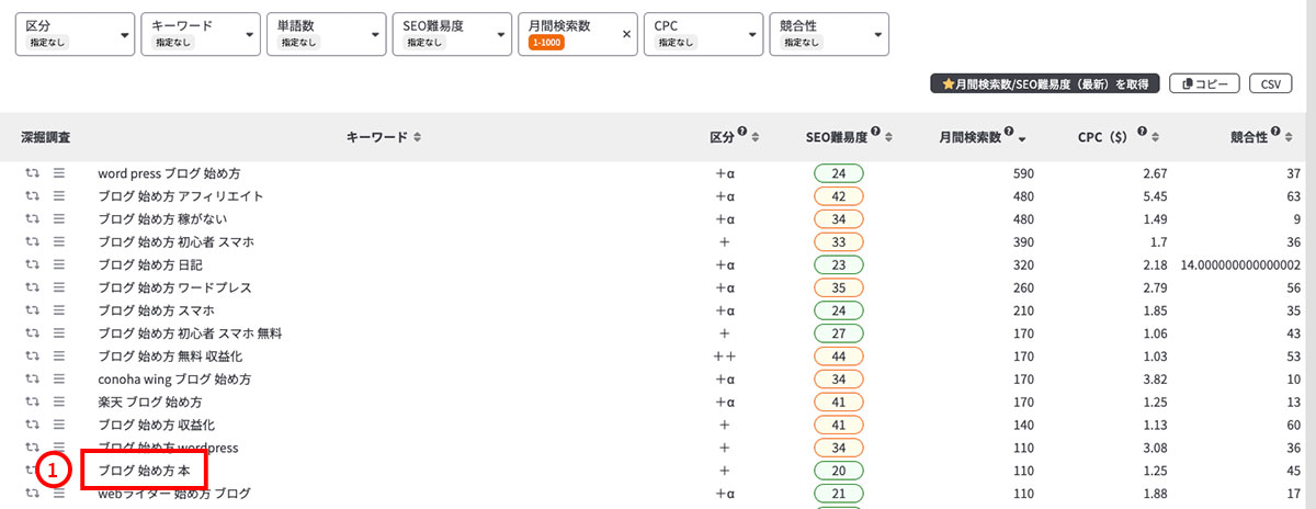 検索数は少ないですが、読者の検索意図がかなり明確で、ライバルサイトも少なく、初心者でも検索上位表示を狙えるキーワードです。