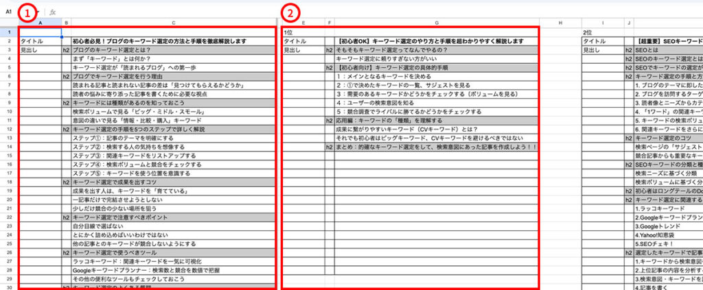 あらかじめスプレッドシートなどにキーワード一覧を作っておき、どの言葉でどんな記事を書いたかを整理しておくと、食い合いを防ぎやすくなります。