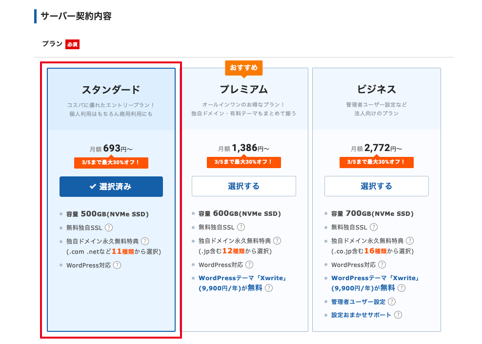 - プラン:スタンダードプラン