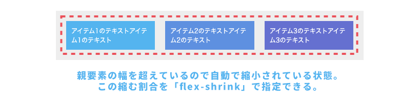 デフォルトのFlexboxでは、子要素が親要素の横幅を超えても折り返されずに1行に詰め込まれるという仕様になっています。