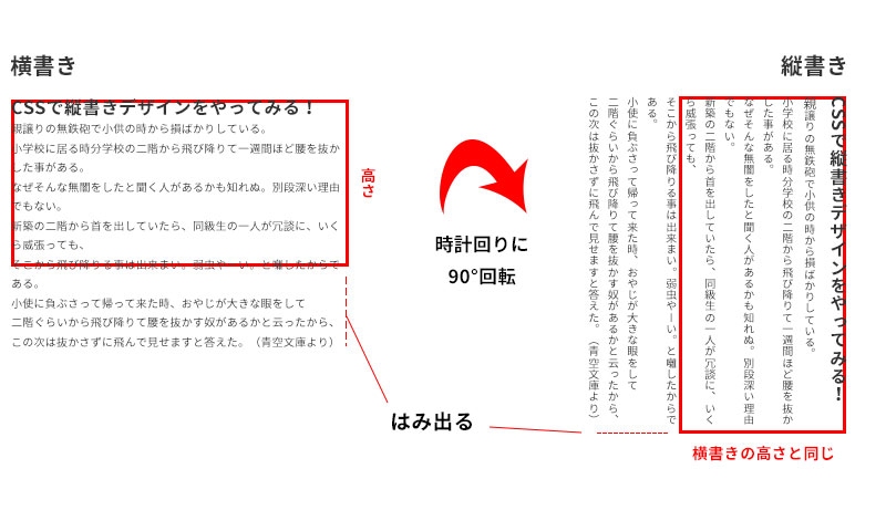 これは横書きのボックスがそのまま時計回りに90°回転して縦書きになったというイメージを持てばわかりやすいです。