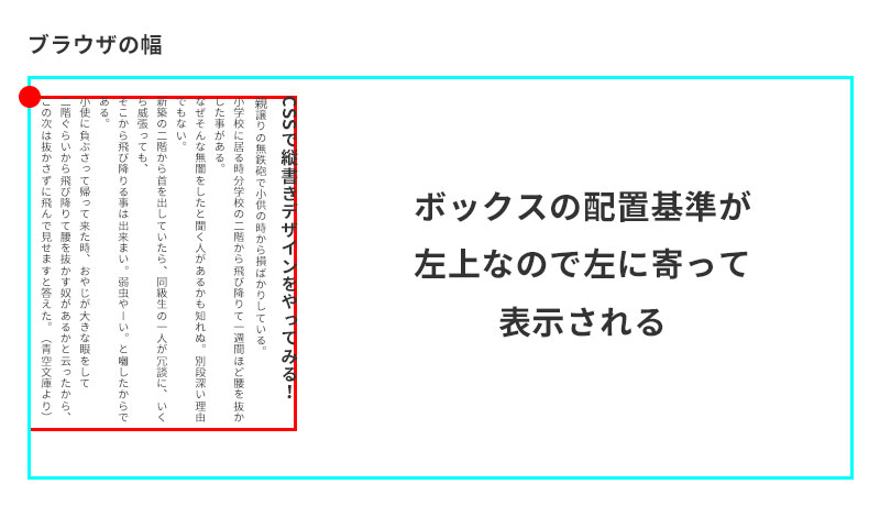 そして、左に寄っていたのはボックスの配置基準が左上のためです。下図参照。