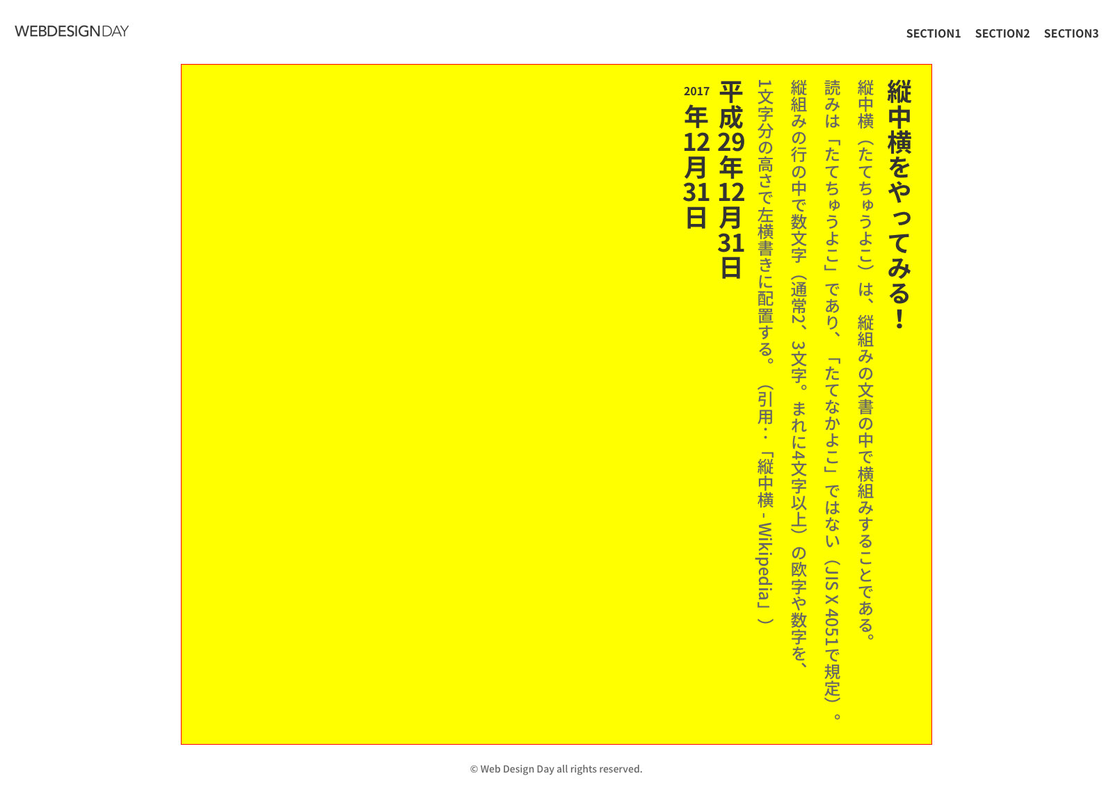 <h2 class="tategaki__title">縦中横をやってみる!</h2>