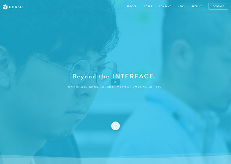 こちらはサイトのキーカラーに合わせて寒色の青を使用しています。洗練されたスタイリッシュな印象を与えるファーストビューです。