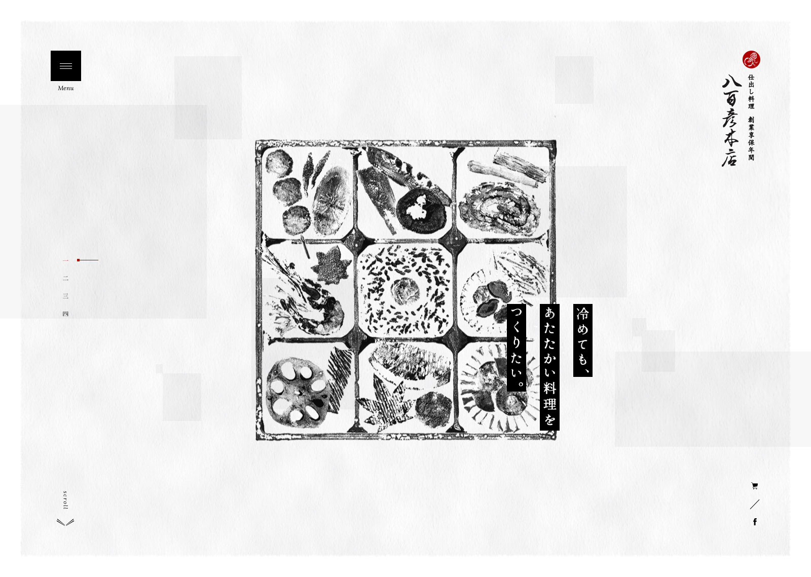 水墨画のようなメインビジュアル。サイト全体にも水墨画風の食材や花などが散りばめられていていて全体の雰囲気がとてもまとまっています。