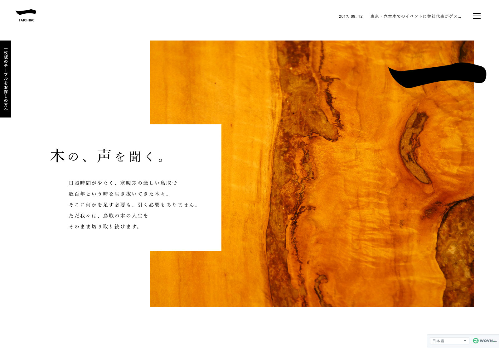 シンプルなファーストビューに大きく存在感を放つ「一」の文字。 サイトのデザイントーンがモノトーンでまとまっており、それによって画像が引き立っています。