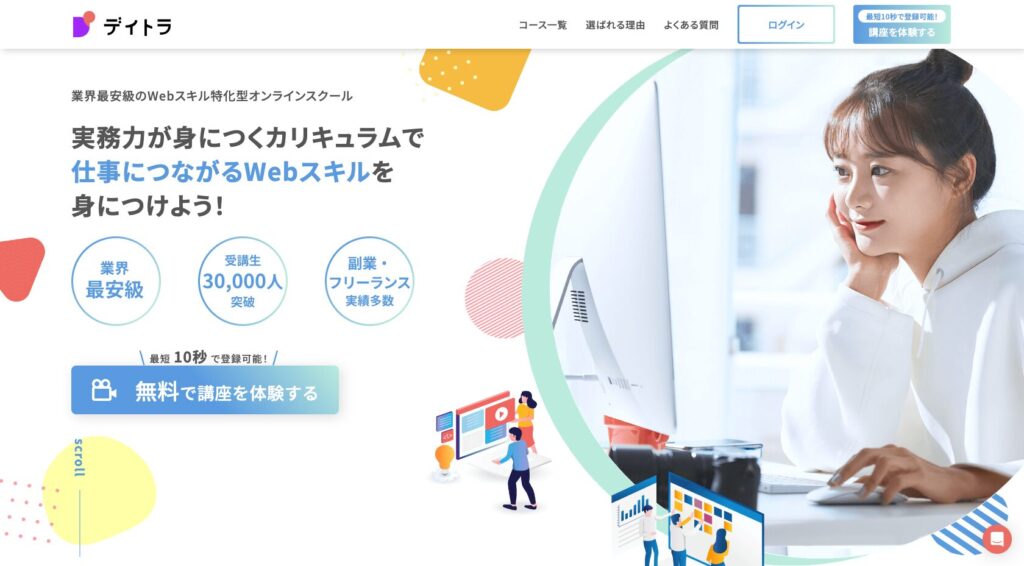 「在宅で実践的なスキルを身につけたい」「フリーランスを目指したい」──そんな方に選ばれているのが、オンライン完結型のWebスクール「デイトラ」です。
